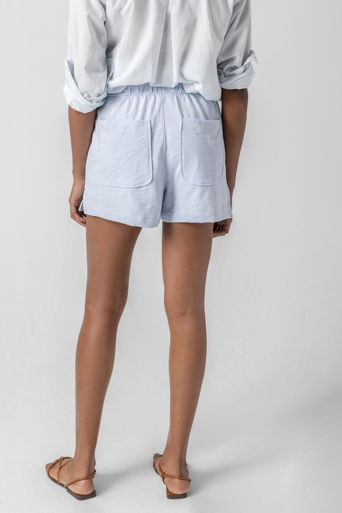 The Fly Front Short combines comfort and style in our midweight Textured Knit fabric. Designed with stitched-down pockets, side slits, and an elastic waistband, these slub jersey shorts are perfect for easy summer dressing. Pair them with the coordinating top or one of our striped tees for an effortless, go-to look.
